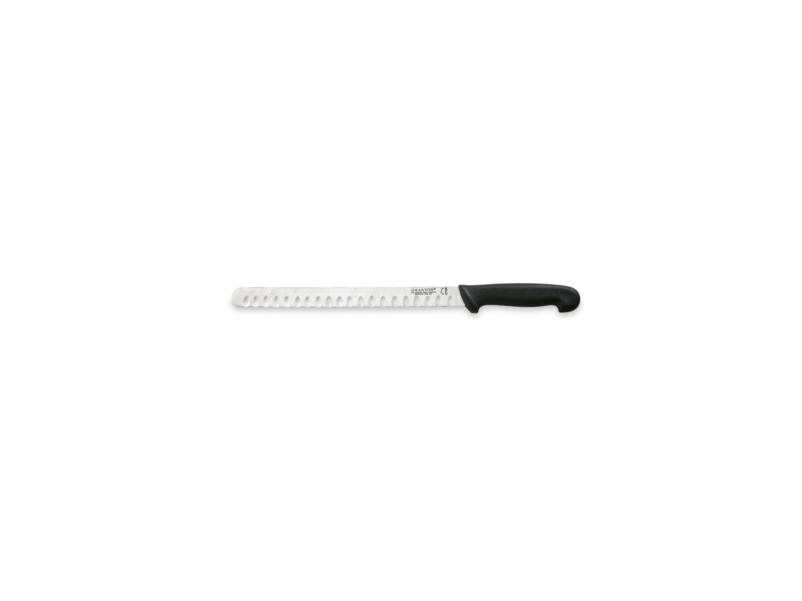 Grantons laksekniv med 28 cm langt blad og luftskær er designet specifikt til at skære laks og andre fisk i tynde, ensartede skiver. Den særlige luftskærsteknologi reducerer friktionen mellem klingen og fisken, hvilket gør det muligt at skære i én flydende bevægelse. Kniven er fremstillet af kvalitets pladestål med en hårdhed på 56 HRC og har et praktisk sort polypropylen-skaft.