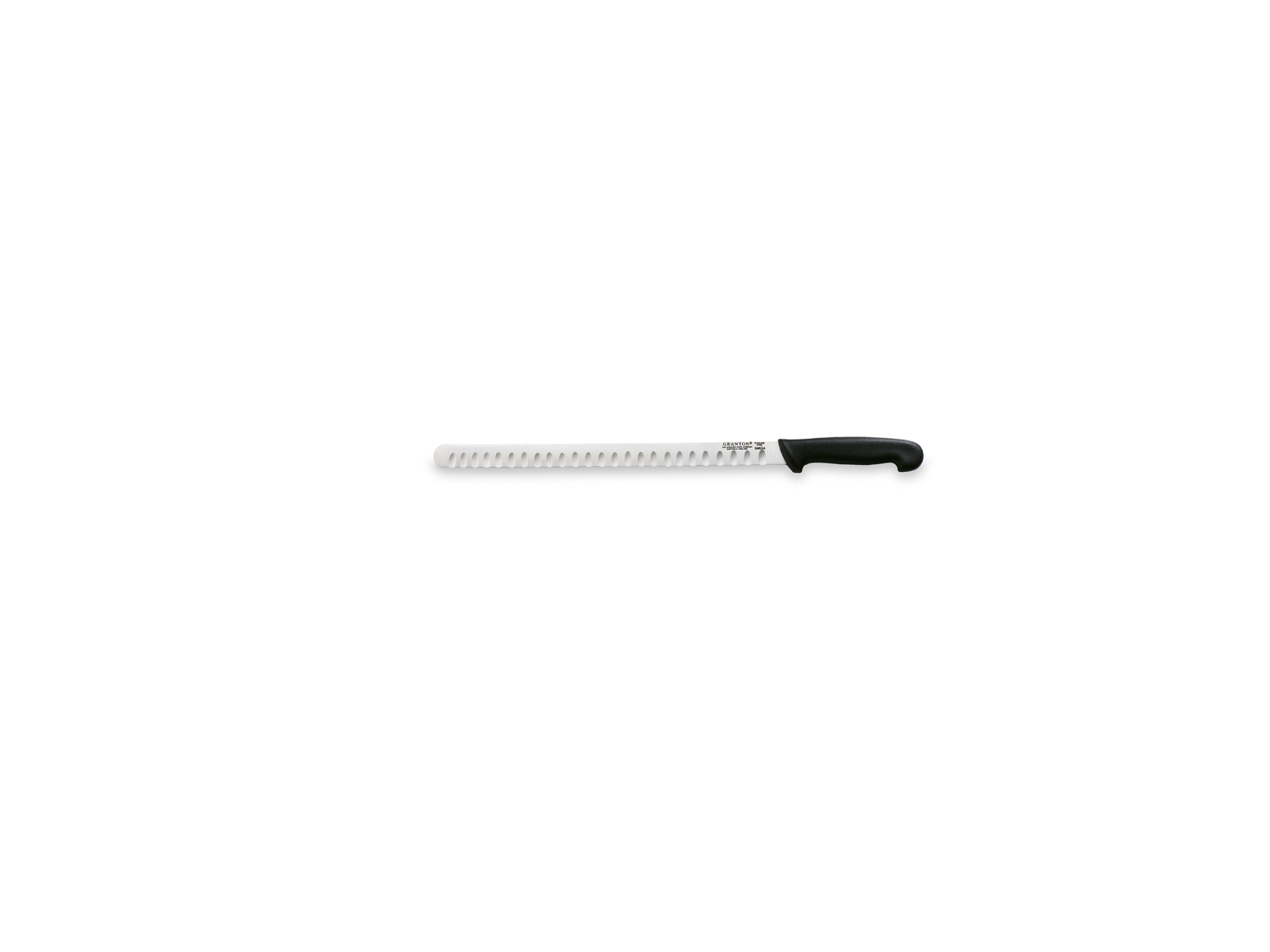 Det 36 cm lange blad er forsynet med Grantons karakteristiske luftskær, som er små forskudte fordybninger langs klingen. Denne teknologi reducerer friktionen markant under skæring, hvilket forhindrer fisken i at klæbe til klingen. Resultatet er rene, glatte snit uden at rive eller ødelægge den delikate fiskekød. Bladet er fremstillet af førsteklasses pladestål med en hårdhed på 56 HRC, hvilket giver en fremragende skarphed og holdbarhed.