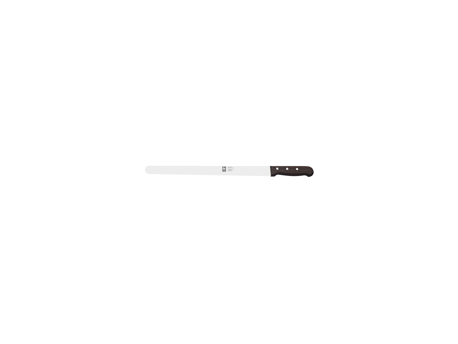 Icel Tradicao laksekniven med 36 cm klinge giver dig mulighed for at skære smukke, ensartede skiver af laks og andre store fisk. Den lange, fleksible klinge skærer gennem fisken i én glidende bevægelse, mens det elegante rosentræshåndtag sikrer et behageligt og sikkert greb under arbejdet.