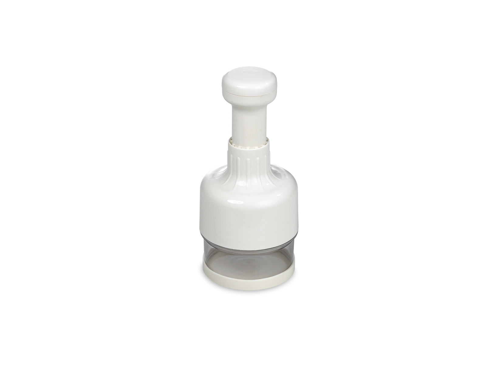 Den gennemsigtige hakkecylinder fungerer også som opbevaringsbeholder takket være det medfølgende låg. Dette giver mulighed for at opbevare de hakkede ingredienser lufttæt og friske umiddelbart efter tilberedning. Den gummibelagte bund sikrer, at løghakkeren står fast på køkkenbordet under brug, hvilket gør hele processen mere sikker og kontrolleret.