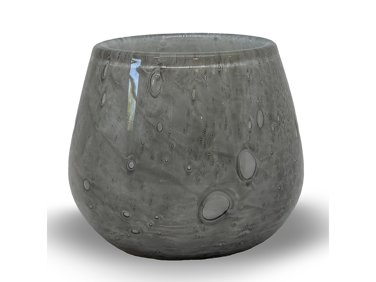 Luna lysestagen i mundblæst, genanvendt glas forener funktionalitet og æstetik i et tidløst design. Med en diameter på 12 cm og en højde på 10,5 cm skaber denne grå glasstage en varm og indbydende atmosfære. Den håndlavede fremstillingsproces sikrer, at hver stage har sit helt eget unikke udtryk og mønster.