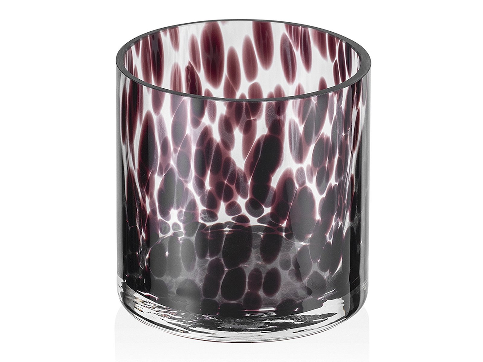 Denne lysestage i glas med sprinkles i bramble-farve er designet til at skabe en varm og hyggelig atmosfære i ethvert rum. Med en diameter på 9 cm og højde på 9 cm har lysestagen den perfekte størrelse til at placere på spiseborde, vindueskarme eller hylder. Glasmaterialet giver et smukt lysspil, når stearinlyset er tændt.