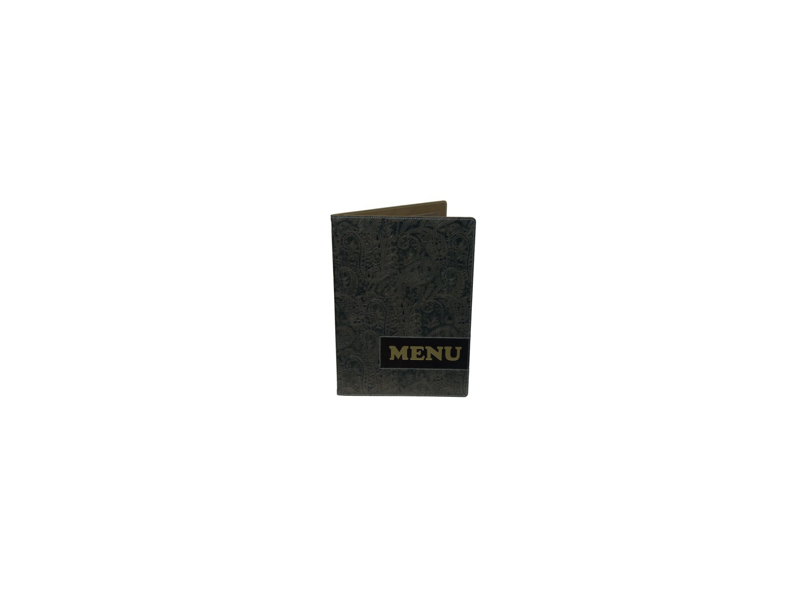 Vermes Design menukort i A4-format med paisley-mønster kombinerer eksklusivt design med praktisk funktionalitet. Dette håndlavede menuomslag i brun kunstlæder har dobbelte lommer og er designet til restauranter, barer og caféer, der ønsker at give gæsterne et førsteklasses indtryk allerede inden maden serveres.