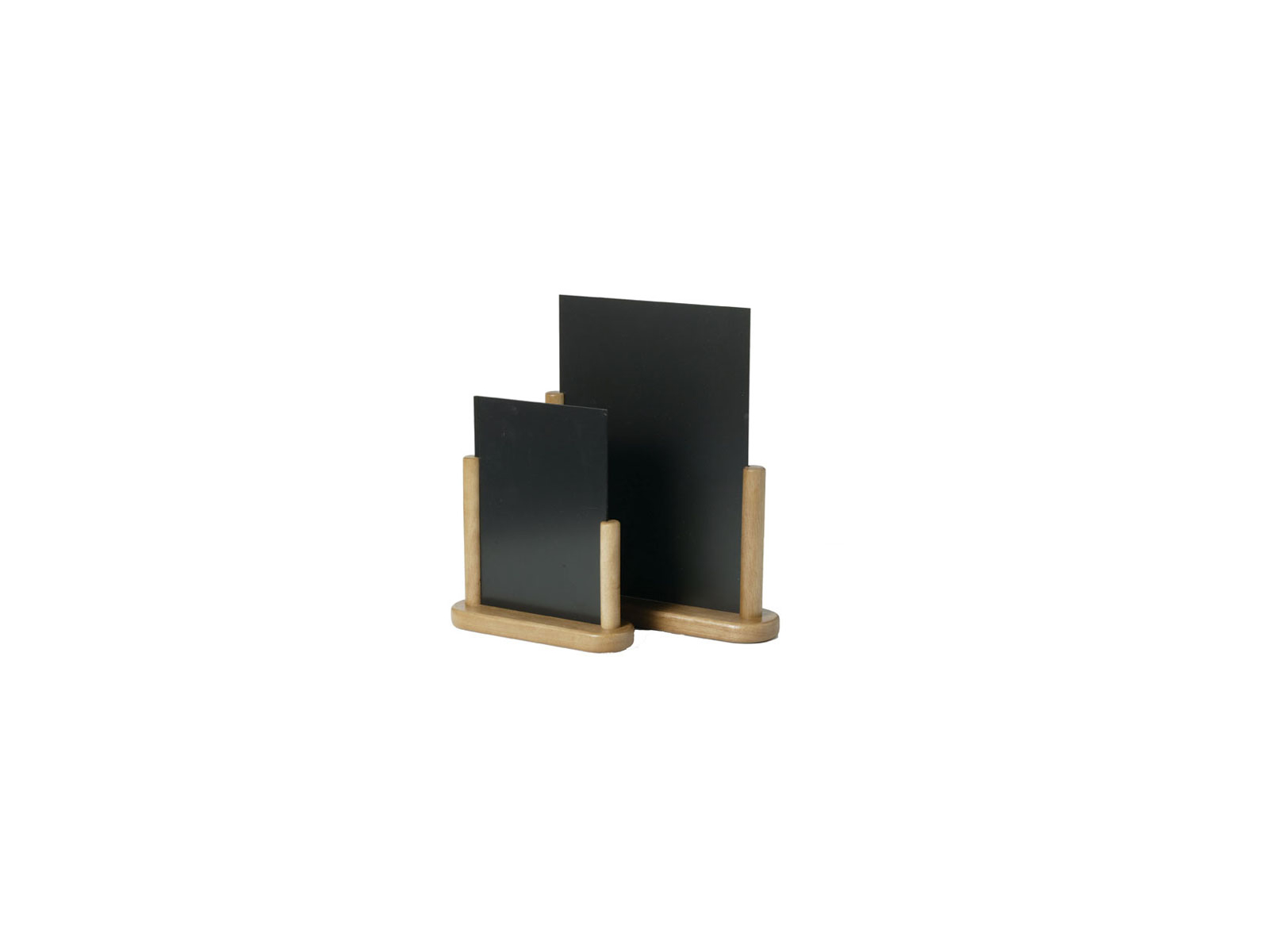 Denne dobbeltsidede A5 tavle med fod af lyst bøgetræ giver dig en elegant og praktisk måde at præsentere information på. Med en størrelse på 15x21 cm og en robust konstruktion på 233x200x60 mm er denne tavle ideel til at fremvise menuer, tilbud eller vigtige meddelelser i både indendørs og udendørs miljøer.