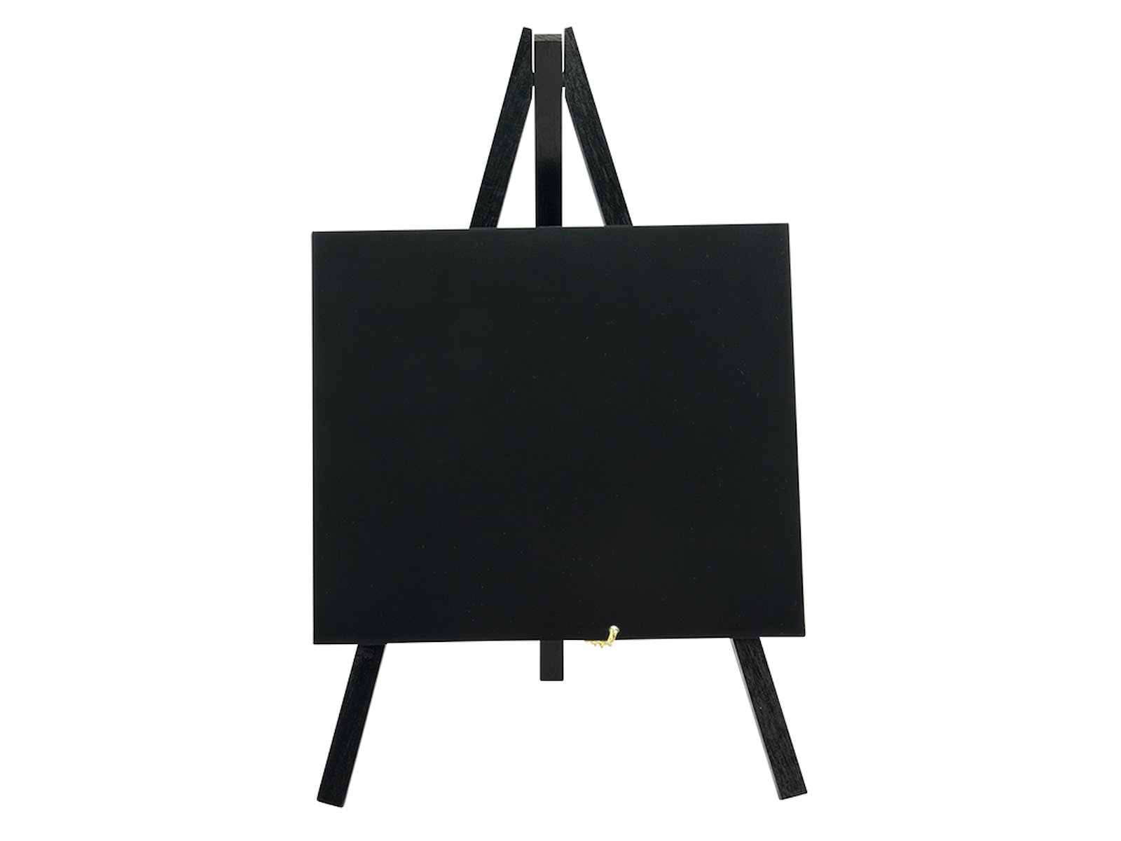 Denne elegante tavle med ministaffeli fra Securit kombinerer funktionalitet med et stilrent design. Den sortlakerede træramme med fastmonteret tavle giver dig en holdbar og æstetisk tiltalende løsning til at præsentere dine budskaber. Tavlen leveres komplet med en hvid Securit® Original kridtmarker, så du kan tage den i brug med det samme.