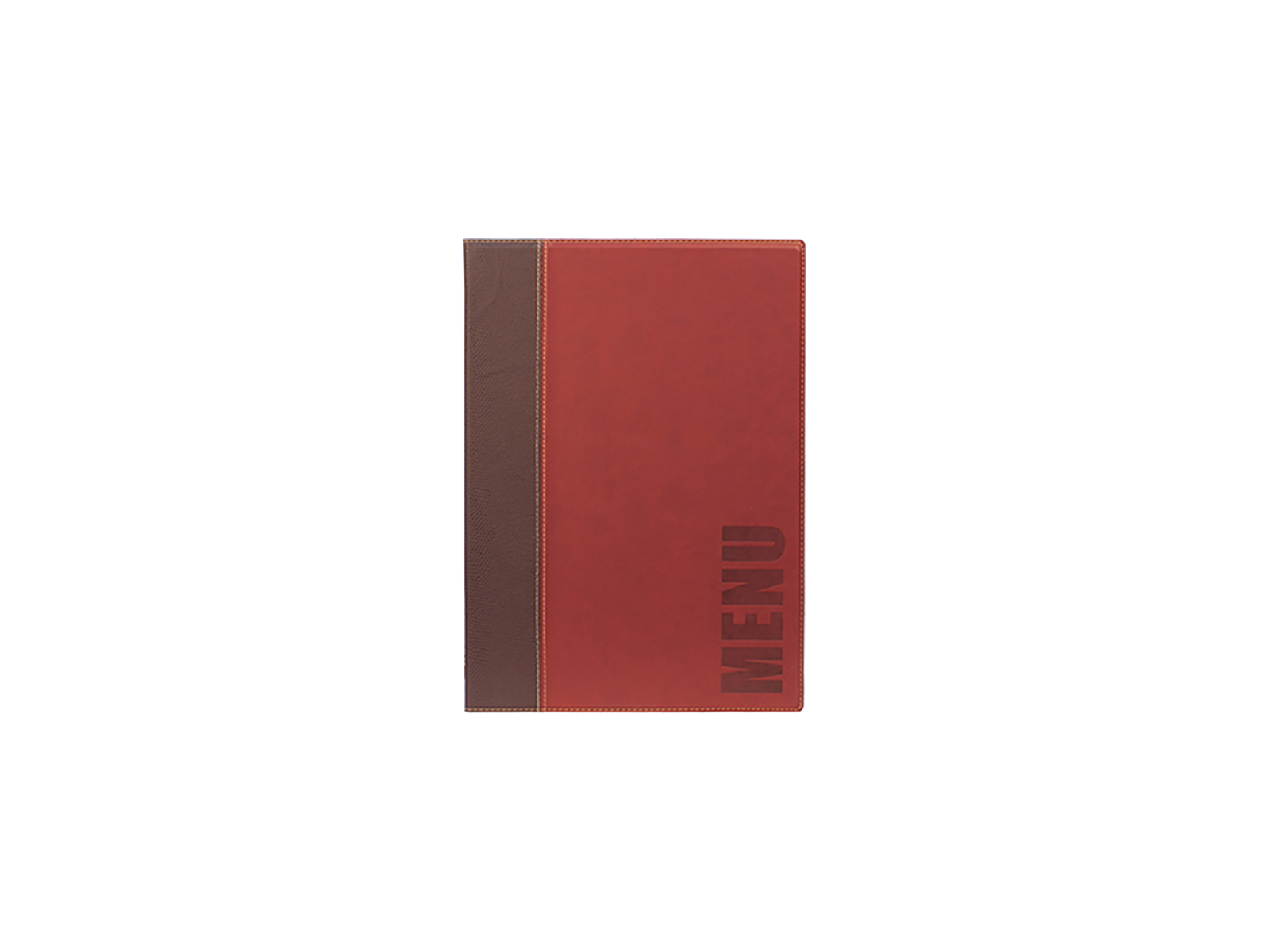 - Professionelt design med syede kanter og præget "Menu" på forsiden