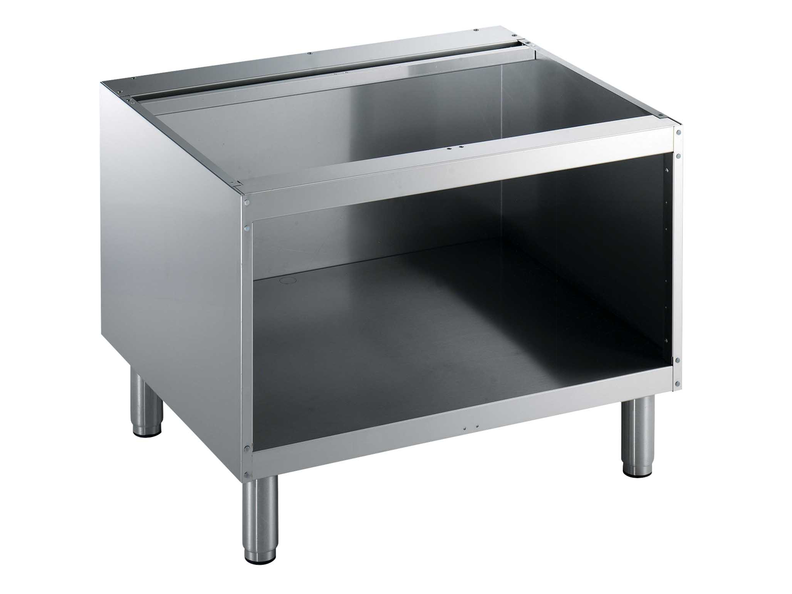 Dette åbne understel i rustfrit stål med målene 800x550x600mm giver en solid base til dit professionelle køkkenudstyr. Konstrueret i holdbart rustfrit stål med Scotch Brite-finish sikrer det både lang levetid og nem vedligeholdelse i travle køkkenmiljøer.