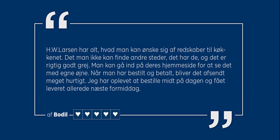 I mere end en menneskealder har H.W.Larsen været det valgte stop for kokke og madprofessionelle, der kræver professionelt køkkenudstyr og enestående service. Dette er vores beskedne bidrag til en vidunderlig branche som har placeret Danmark på verdenskortet.