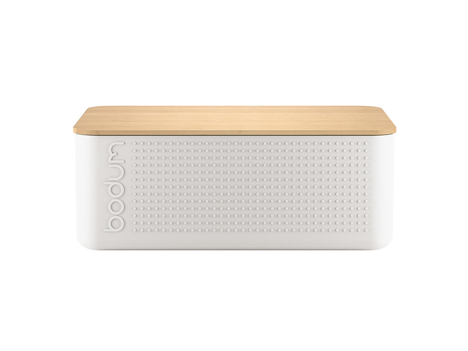 Bodum Bistro brødboksen i hvid er designet til at holde dit brød friskt i længere tid. Den rummelige boks på 36,5x23,7x13,8 cm er fremstillet af BPA-fri plast, mens det medfølgende bambuslåg med praktiske riller fungerer som både låg, skærebræt og serveringsbræt.
