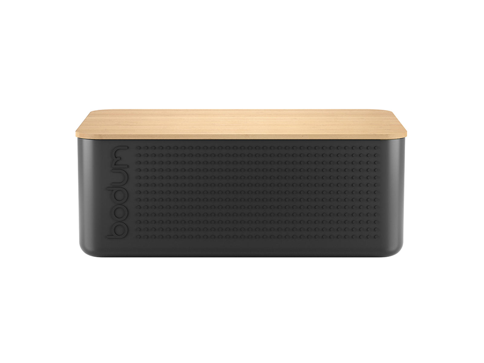 Denne rummelige brødboks fra Bodum Bistro-serien giver optimal opbevaring til dit hjemmebagte eller købte brød. Med målene 36x23x14 cm er der god plads til et stort brød eller flere mindre bagværker. Brødboksen er fremstillet i sort BPA-fri plast med et praktisk låg i bæredygtigt bambus.