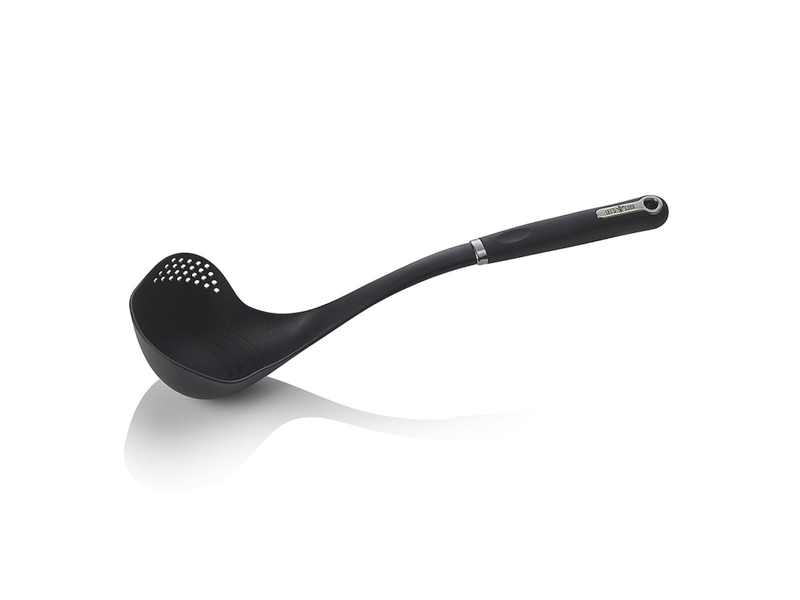 Denne 35,5 cm lange opøser i sort nylon kombinerer praktisk funktionalitet med slidstyrke. De særlige perforeringer i siden gør den perfekt til både servering og afdrypning, så du nemt kan filtrere væde fra pasta, grøntsager eller andre retter. Designet til daglig brug i både private og professionelle køkkener.