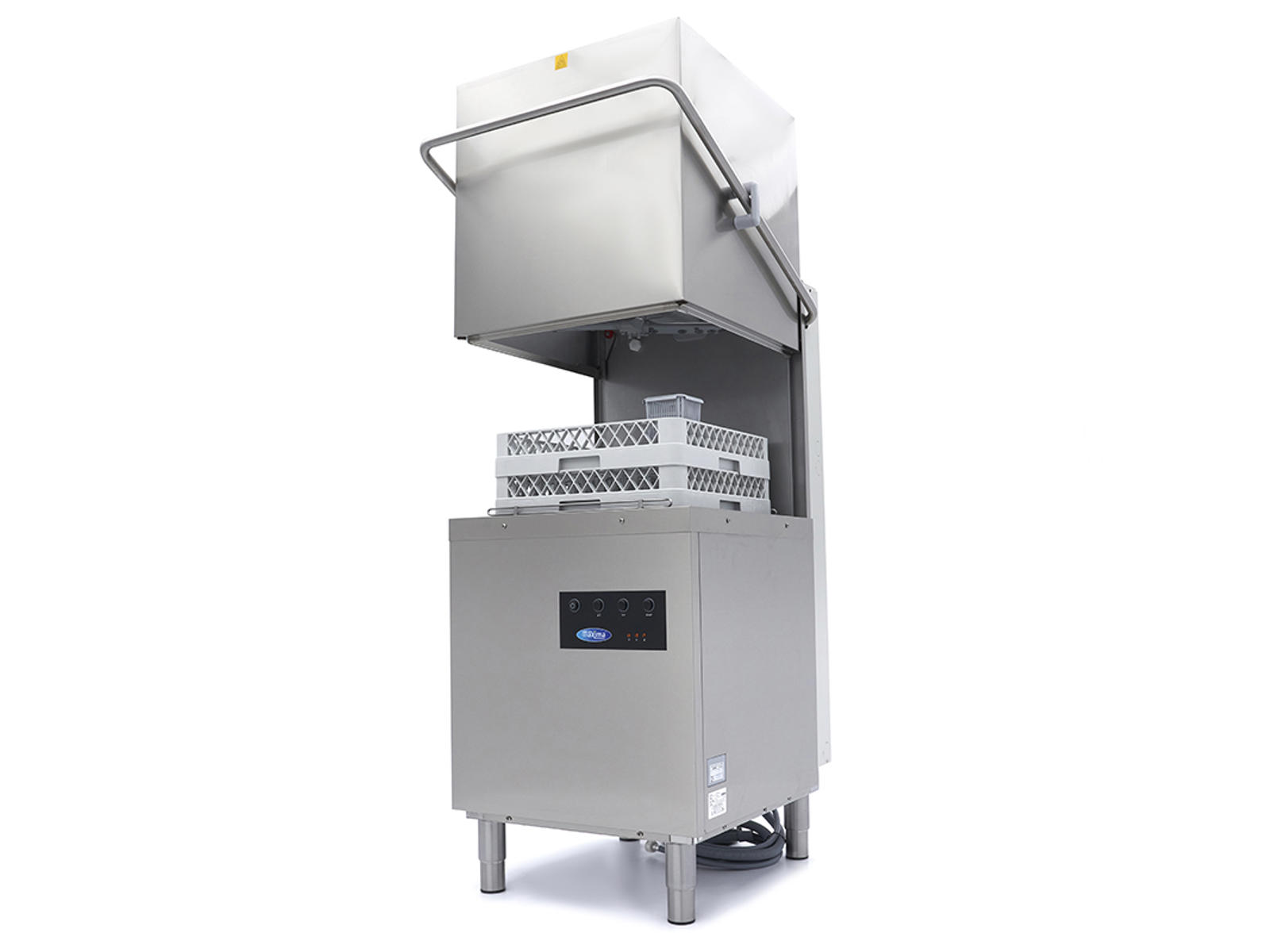 Hætteopvaskeren tilbyder to vaskeprogrammer på henholdsvis 90 og 180 sekunder, så du kan tilpasse opvasken efter behov og snavsniveau. Den kraftfulde 8700W motor med 400V tilslutning sikrer konstant høj vasketemperatur og effektiv rengøring. Trods den høje ydeevne holder støjniveauet sig under 65 dB, hvilket gør maskinen velegnet til åbne køkkenmiljøer, hvor støj kan være en udfordring.