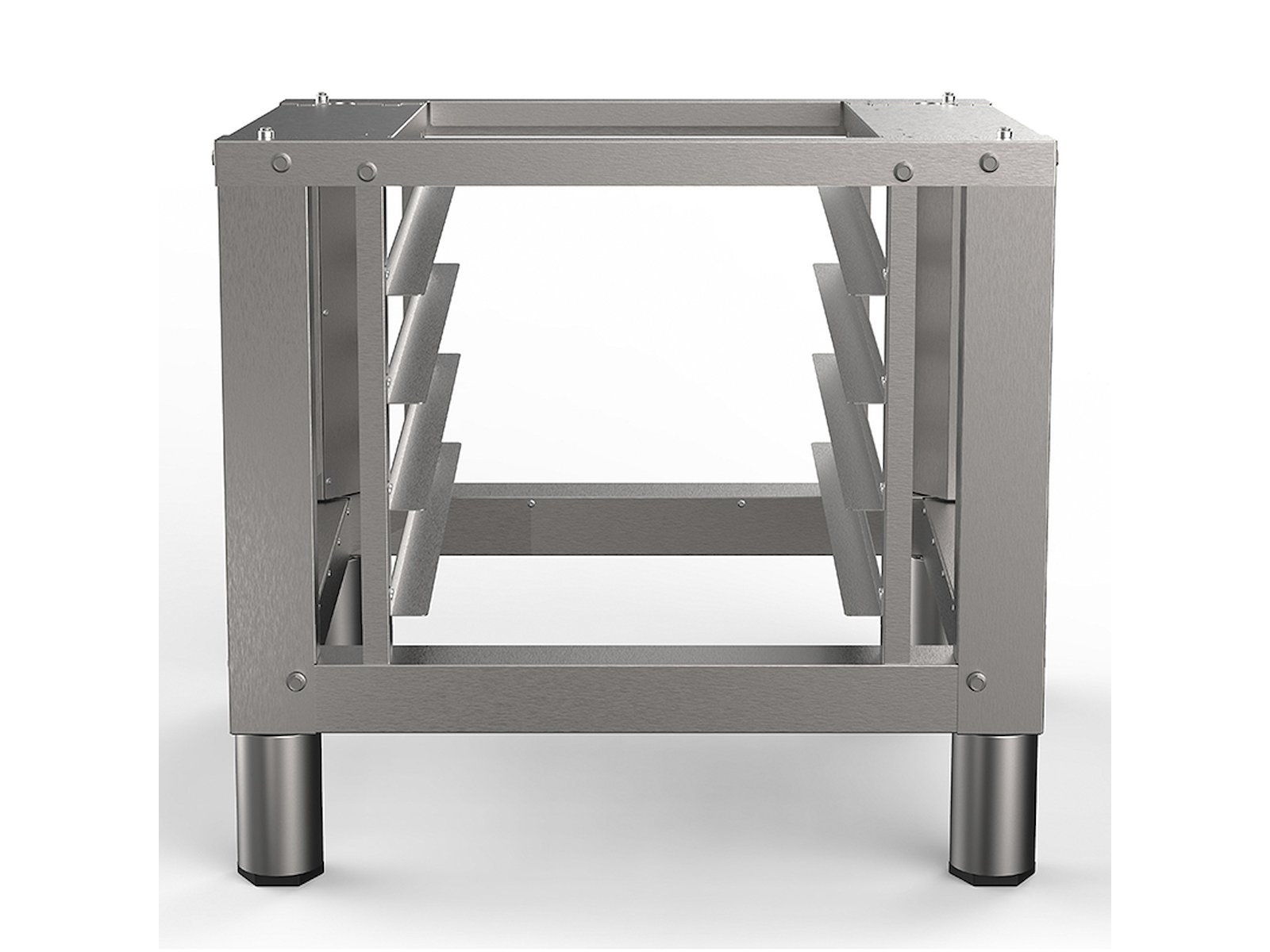 Stellets design sikrer desuden optimal stabilitet, selv når ovnen arbejder ved høj temperatur, vibrationer eller tunge bakker. Det gør det til et sikkert fundament for dine Torcello-ovne og en vigtig del af en ergonomisk og effektiv køkkenopsætning.
