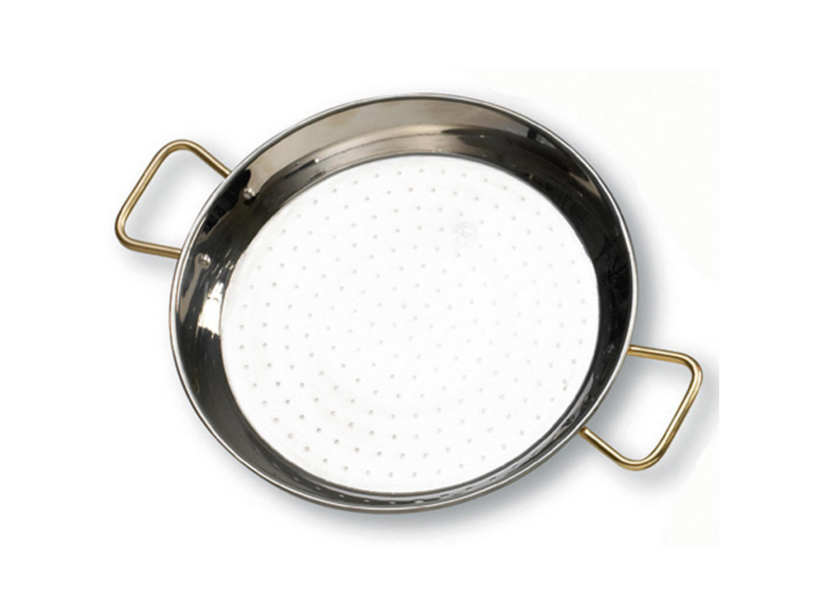 Paellapanderne fra Garcima La Ideal serien er designet til at tilføje et strejf af luksus til din madlavning med deres elegante messinggreb og højkvalitets 18/10 rustfrit stål.