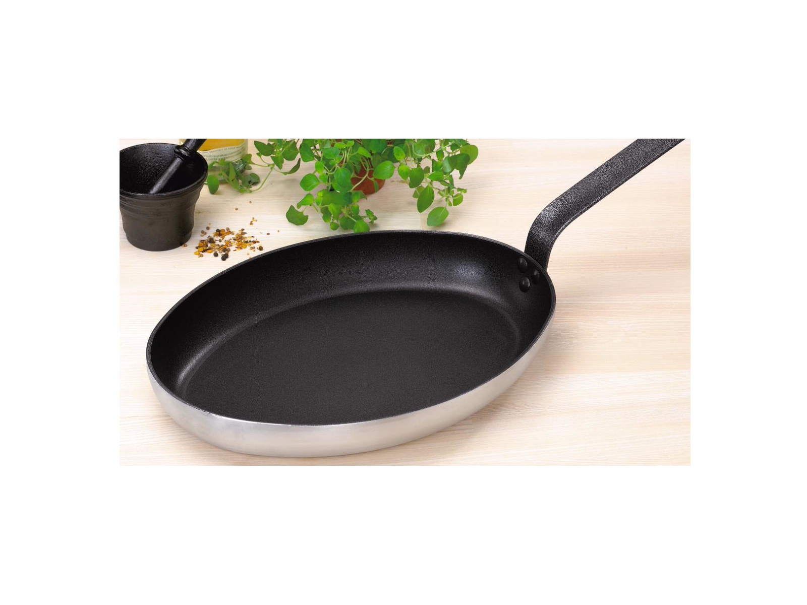 Med et indvendigt mål på 34x23,5 cm og en kapacitet på 3,9 liter er denne pande rummelig nok til hele fisk eller flere portioner på én gang. Den 4-lags non-stick belægning forhindrer mad i at brænde fast og reducerer behovet for fedtstof under tilberedningen. Dette gør ikke kun rengøringen lettere, men bidrager også til sundere madlavning. Pandens ovale form er særligt velegnet til fisk, men fungerer også fremragende til andre retter der kræver mere plads end en traditionel rund pande.