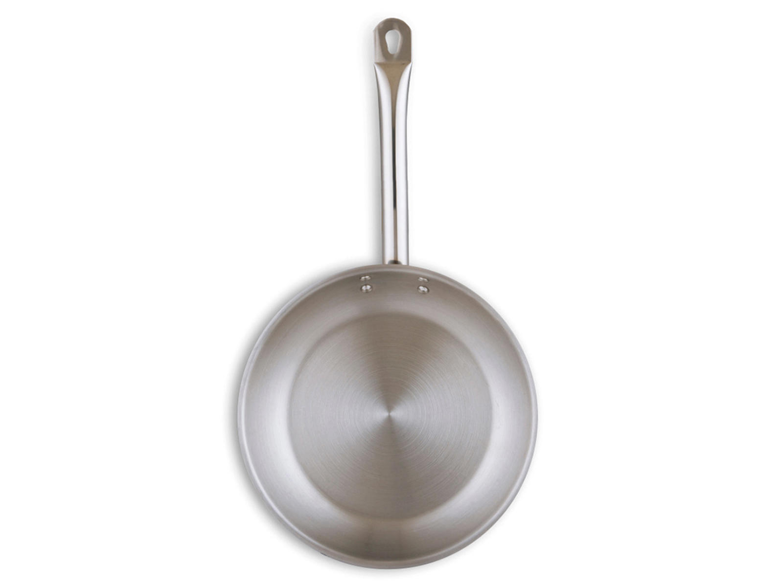 Rustfrit stål er et fremragende materiale til madlavning, da det ikke reagerer med fødevarer og derfor bevarer madens naturlige smag. Materialet er modstandsdygtigt over for ridser og skader, hvilket gør panden velegnet til daglig brug. Den blanke overflade er nem at holde ren og kræver minimal vedligeholdelse sammenlignet med andre materialer.