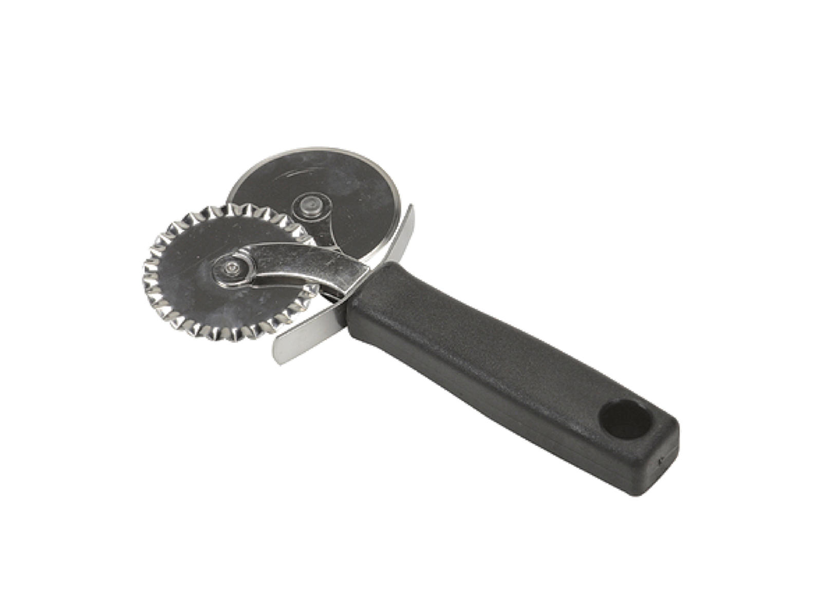 Dette 2-i-1 pastahjul fra Schneider kombinerer to forskellige skærehjul i ét praktisk redskab. Med både et riflet og et lige skærehjul i rustfrit stål kan du skabe varierede pastaudskæringer med samme værktøj. Det ergonomiske plasthåndtag i sort sikrer et behageligt og stabilt greb under brug.