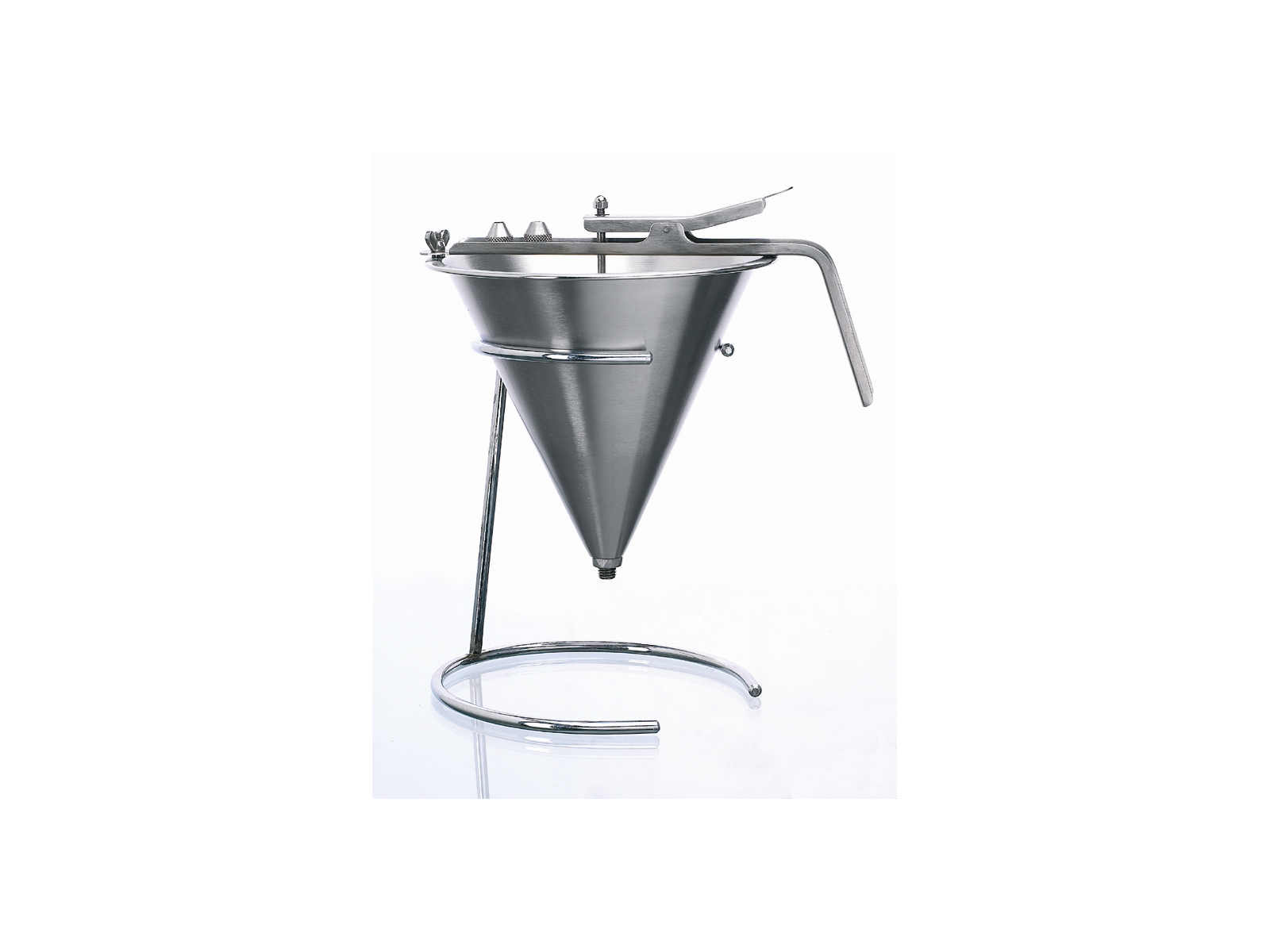 Portionstragtens præcise mål er Ø185x185 mm, hvilket gør den til et praktisk redskab i køkkenet. Den rummer 1,9 liter og kommer med to udskiftelige tyller (Ø3 mm og Ø6 mm) samt et output på Ø8 mm uden rør. Konstruktionen i rustfrit stål sikrer god hygiejne og lang levetid. Husk at trådstativ til montering sælges separat.
