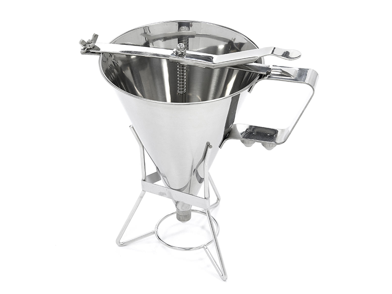 Denne rustfri portionstragt med en rummelig kapacitet på 1,6 liter gør det nemt at dosere dej med høj præcision. Udstyret med en praktisk doseringsknap og tre forskellige udløbsdimensioner (3, 6 og 8 mm) giver den dig fuld kontrol over portionsstørrelser.