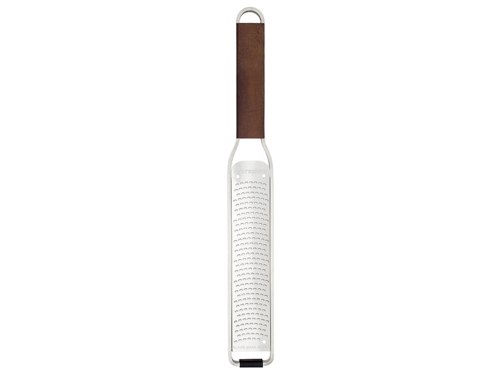 Microplane Master Rivejern Zester kombinerer funktionalitet og kvalitet i et elegant design. Med et ultra-skarpt fotoætset stålskær og et ergonomisk håndtag i holdbart valnøddetræ får du et præcisionsværktøj til køkkenet. Den skridsikre gummifod sikrer stabilitet under brug, så du kan koncentrere dig om madlavningen.