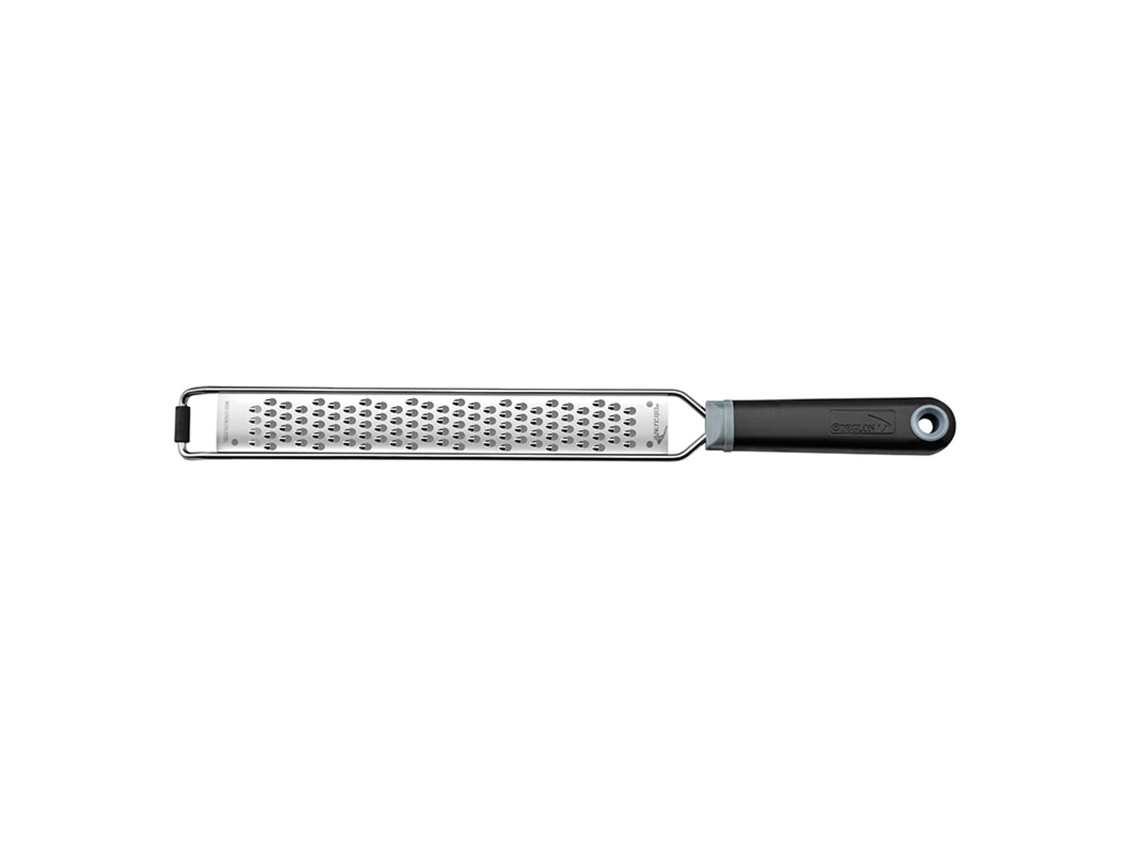 Håndtaget er fremstillet af en kombination af termoplastisk gummi (TPR) og polypropylen, hvilket giver et sikkert greb under brug. Dette reducerer risikoen for at glide, selv med våde hænder. Den gennemtænkte vægtfordeling på kun 145 gram minimerer belastningen ved længere tids brug, hvilket er særligt vigtigt i travle køkkener. Med en samlet længde på 380 mm giver rivejernet god rækkevidde og balance under arbejdet.