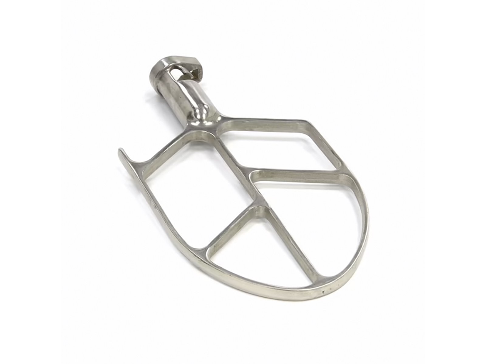 Denne Maxima-spartel er kompatibel med MPM 10L røremaskiner produceret efter 2017. Den er fremstillet af fødevaregodkendt rustfrit stål, der både er slidstærkt og hygiejnisk. Designet følger maskinens indre kontur for at sikre, at alle ingredienser bearbejdes jævnt under blandingsprocessen.