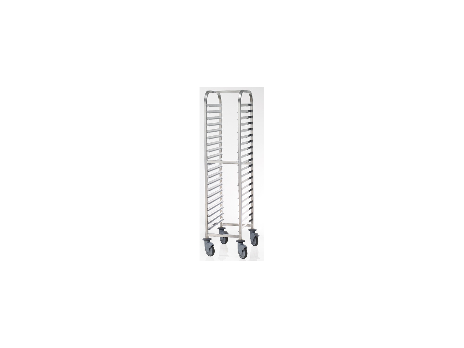 Stikvognen har 20 hylder/skinner med 6,7 cm mellemrum, hvilket giver plads til 20 GN 1/1 bakker.