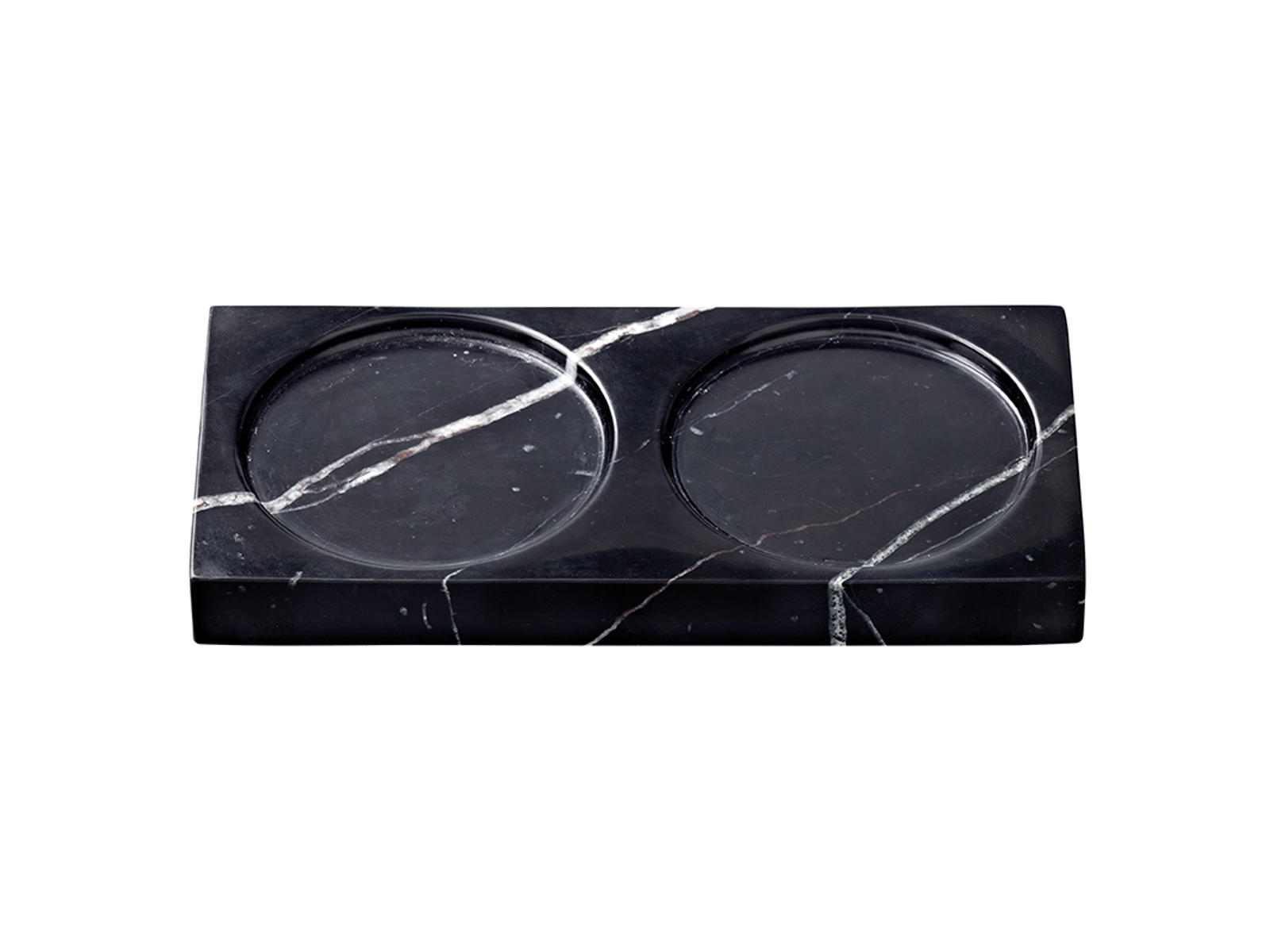 - En holdbar bakke i sort marmoreret materiale