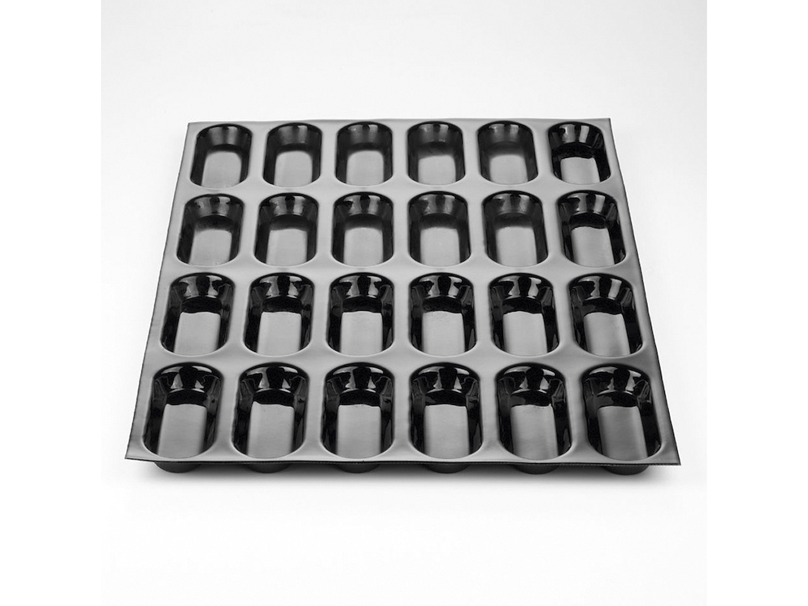 Bageformens 24 fordybninger er nøje dimensioneret til at skabe perfekte éclairs med ensartet størrelse og form. Dette sparer tid på efterfølgende tilpasning og giver et professionelt udtryk på det færdige bagværk. Den gennemtænkte konstruktion sikrer jævn varmefordeling, hvilket resulterer i ensartet bagning af alle 24 éclairs samtidigt.