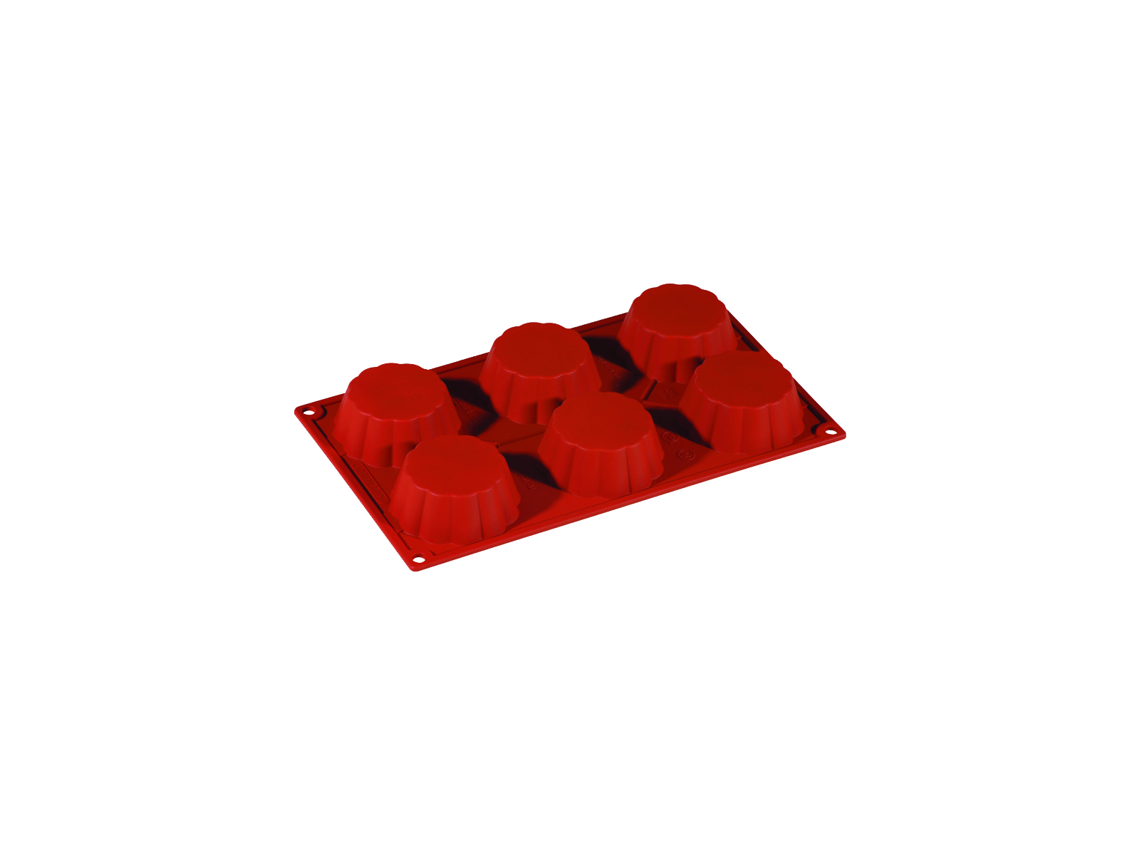 Denne røde silikoneform fra Pavoni Formaflex-serien giver dig mulighed for at skabe seks ensartede blomsterformede kreationer med høj præcision. Formen måler 175x300 mm, hvilket svarer til 1/3 GN-format, og hver af de seks fordybninger har en diameter på 79 mm og en højde på 37 mm med en kapacitet på 100 ml pr. portion.