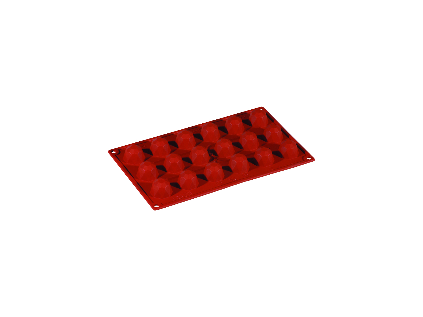 De 18 diamantformede fordybninger med en diameter på 35 mm giver et elegant og ensartet resultat hver gang. Silikonematerialet sikrer, at dine kreationer nemt slipper formen uden at gå i stykker, selv uden brug af fedtstof. Med en vægt på kun 112 gram er formen let at håndtere, rengøre og opbevare. Den fleksible silikone gør det muligt at vende formen og trykke produkterne ud uden besvær.