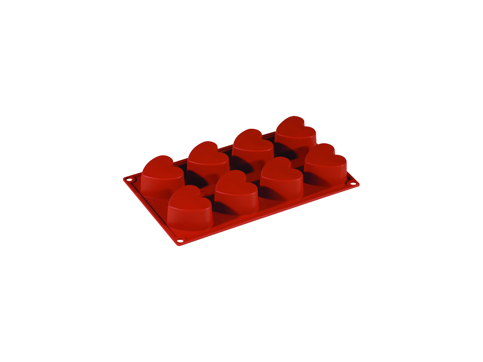 Pavoni Formaflex silikoneform i 1/3 GN-format giver dig mulighed for at skabe 8 ensartede hjerteformede portioner i hver bagning. Denne røde silikoneform på 175 x 300 mm er fremstillet i førsteklasses silikone, der tåler temperaturer fra -40°C til +280°C. Hver af de 8 hjerteformede fordybninger har et volumen på 97 ml, hvilket giver dig præcis portionskontrol.