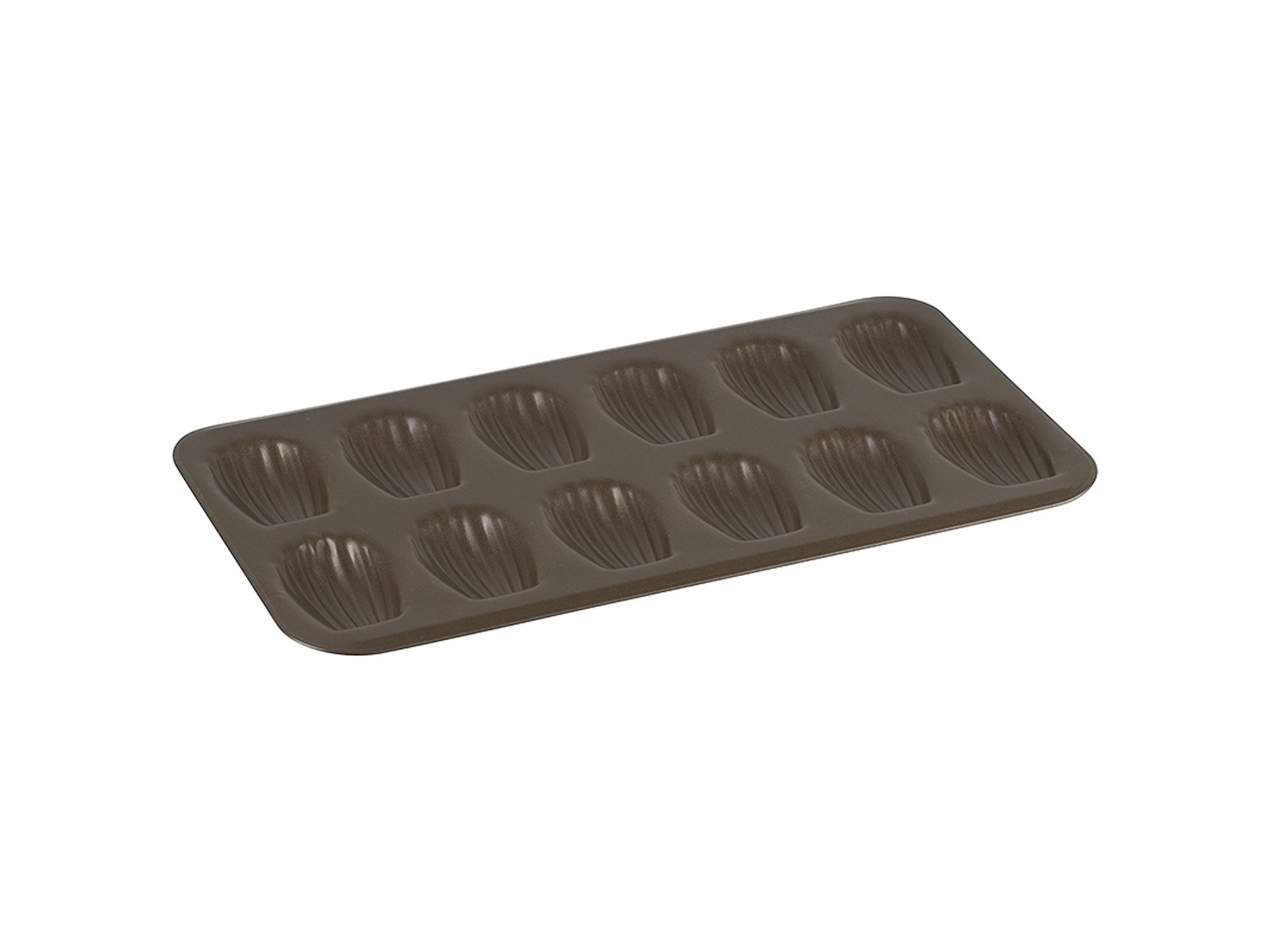 Fremstillet i holdbart stål med brun non-stick belægning, måler denne form 39,5 x 20 cm med en højde på 1,7 cm. Hver af de 12 udformninger giver den perfekte muslingeformede madeleine. Formens design sikrer optimal varmefordeling for ensartede resultater hver gang.