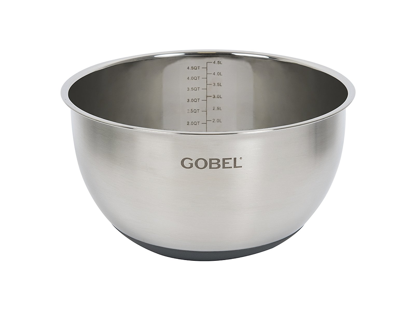 Denne elegante piskeskål fra Gobel kombinerer funktionalitet med professionel kvalitet. Fremstillet i holdbart rustfrit stål og udstyret med en skridsikker silikonebund, der sikrer stabilitet under selv de mest intensive piskearbejder. Med en diameter på 24 cm og et rumfang på 4,5 liter giver skålen rigelig plads til både hverdagsopgaver og større bageprojekter.
