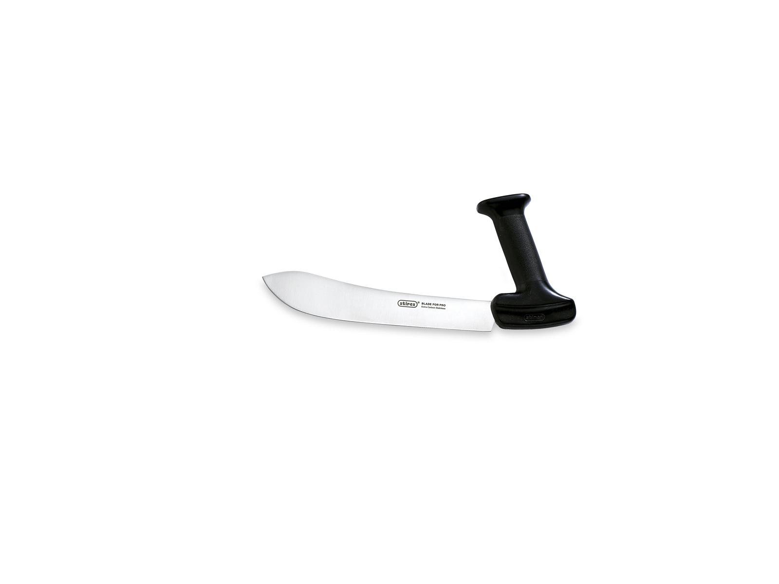 Den karakteristiske opadvendte spids på denne Stirex-kniv er ikke blot et designelement, men en funktionel detalje, der gør det nemmere at udføre præcise snit i kød. Knivens 22 cm lange blad giver god rækkevidde, mens det ergonomiske plasthåndtag reducerer belastningen på hånden ved langvarig brug. Med en vægt på 208 gram har kniven en god balance, der hjælper med at styre kniven præcist gennem forskellige materialer.