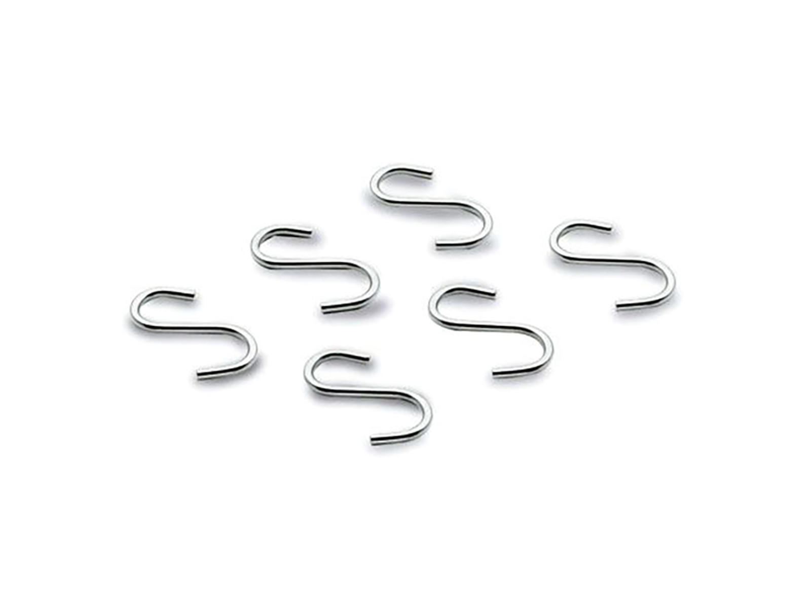 Hver pakke indeholder 6 S-kroge, der tilsammen vejer 80 gram. Krogene er fremstillet i rustfrit stål med en tykkelse på 4 mm, hvilket giver dem en god balance mellem vægt og bæreevne. Den enkle S-form gør dem nemme at montere og flytte rundt efter behov, så du kan tilpasse din køkkenopbevaring løbende.