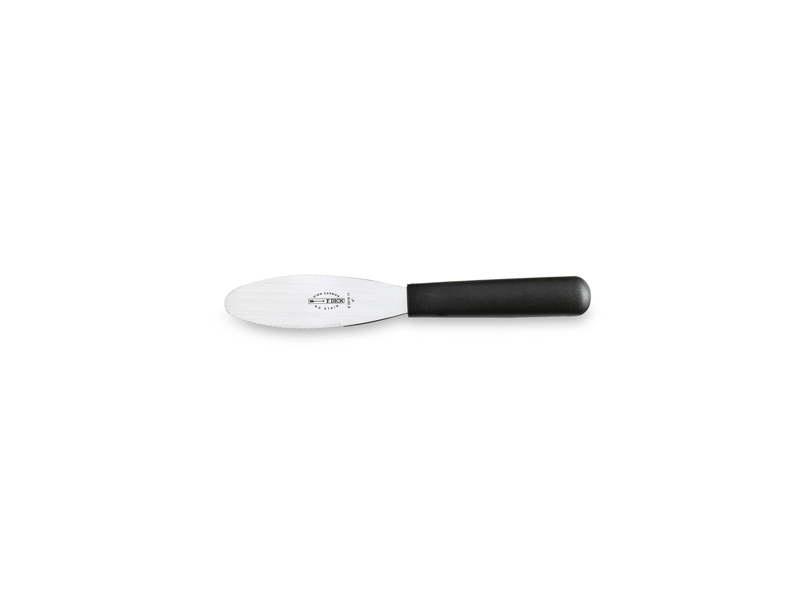 Det bølgeskårne blad på 11 cm gør smørekniven ekstra alsidig, da den både kan skære gennem blødere fødevarer og fordele dem jævnt. Pladestål er valgt for at give kniven den rette balance mellem vægt og styrke - med sine kun 50 gram ligger den godt i hånden uden at føles tung. Det sorte plastskæfte er støbt, så bakterier ikke kan samle sig i samlingerne, hvilket gør kniven særligt hygiejnisk i køkkenet.
