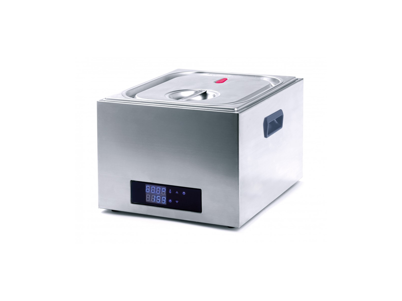 Sous Vide 14 liter SVT-14 er en professionel vandovn med berøringsfølsom skærm og en rummelig kapacitet på 14 liter. Konstrueret i holdbart rustfrit stål og med en temperaturpræcision ned til 0,1°C giver denne maskine dig fuld kontrol over tilberedningsprocessen. Det vandsikrede touch display med blå farvetone kan nemt aflæses fra alle vinkler i køkkenet.