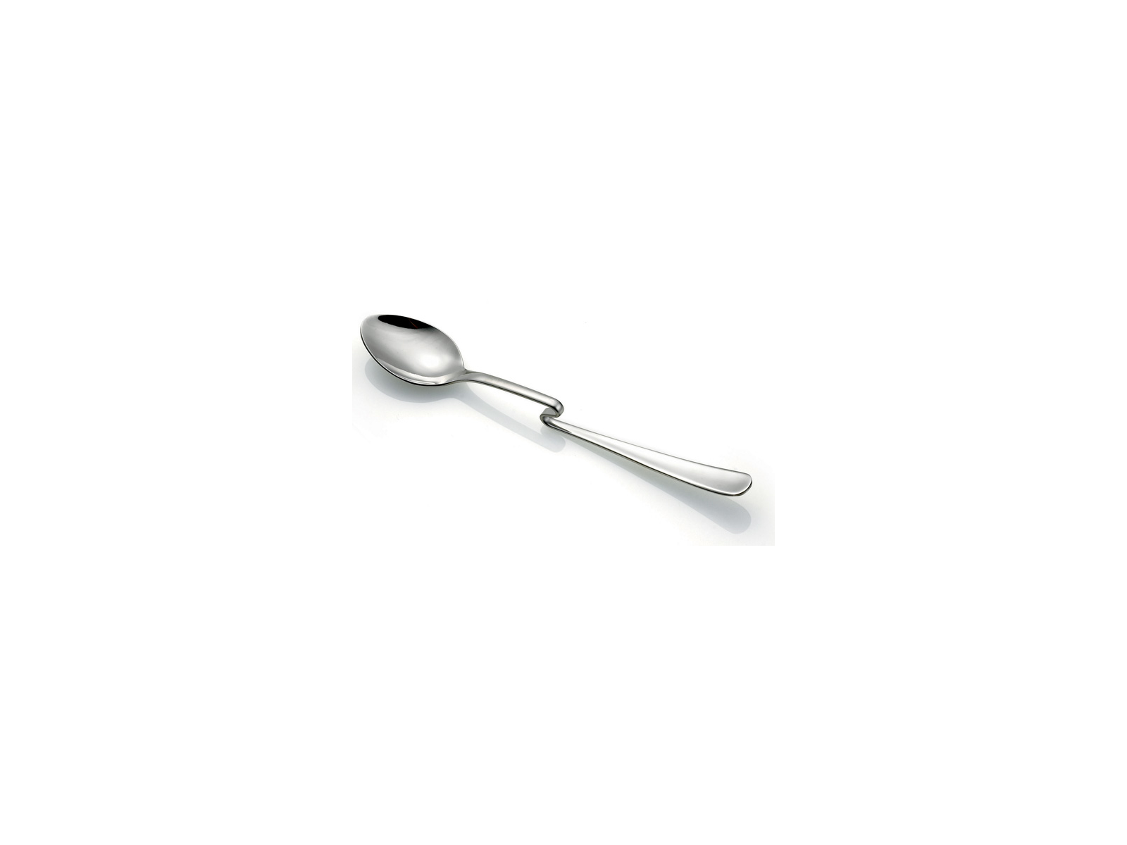 Det specielle knæk på skaftet er ikke kun et æstetisk designelement, men har en praktisk funktion. Knækket tillader skeen at balancere perfekt på kanten af koppen, hvilket betyder at du altid har skeen ved hånden, men uden at den glider ned i drikken. Dette forhindrer også, at skeen bliver for varm, når den bruges til varme drikke. Designet sikrer samtidig, at borddugen forbliver pletfri, da dryp fra skeen ledes tilbage i koppen.