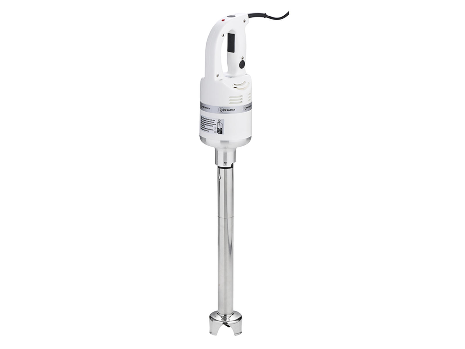 Det ergonomiske design med blå/hvid farvekombination gør stavblenderen behagelig at arbejde med, selv ved længerevarende brug. Den er udstyret med sikkerhedsknap med gummibeskyttelse mod fugt og har auto-run-knap til kontinuerlig blendning. Det højere ventilationspunkt forlænger motorens levetid, mens indikatorlyset viser, at enheden er klar til brug. Stavblenderen er fremstillet i rustfrit stål, hvilket gør den holdbar og velegnet til intensiv brug i professionelle køkkener.