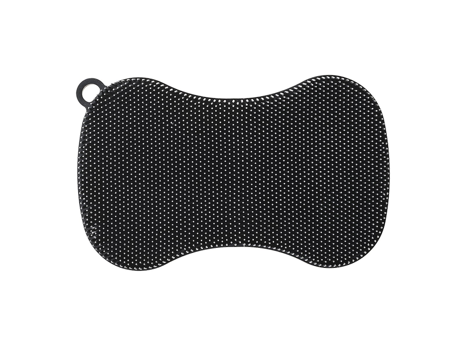 Kochblume SCRUBBY silikonesvamp kombinerer to rengøringsflader i ét praktisk redskab. Med over 2500 fleksible silikoneknopper og en todelt overflade med både en hård og en blød side, tilpasser svampen sig forskellige rengøringsopgaver i køkkenet. Den sorte svamp måler 135 x 85 mm og er fremstillet af holdbar silikone, der er varmebestandig fra -40°C til +300°C.