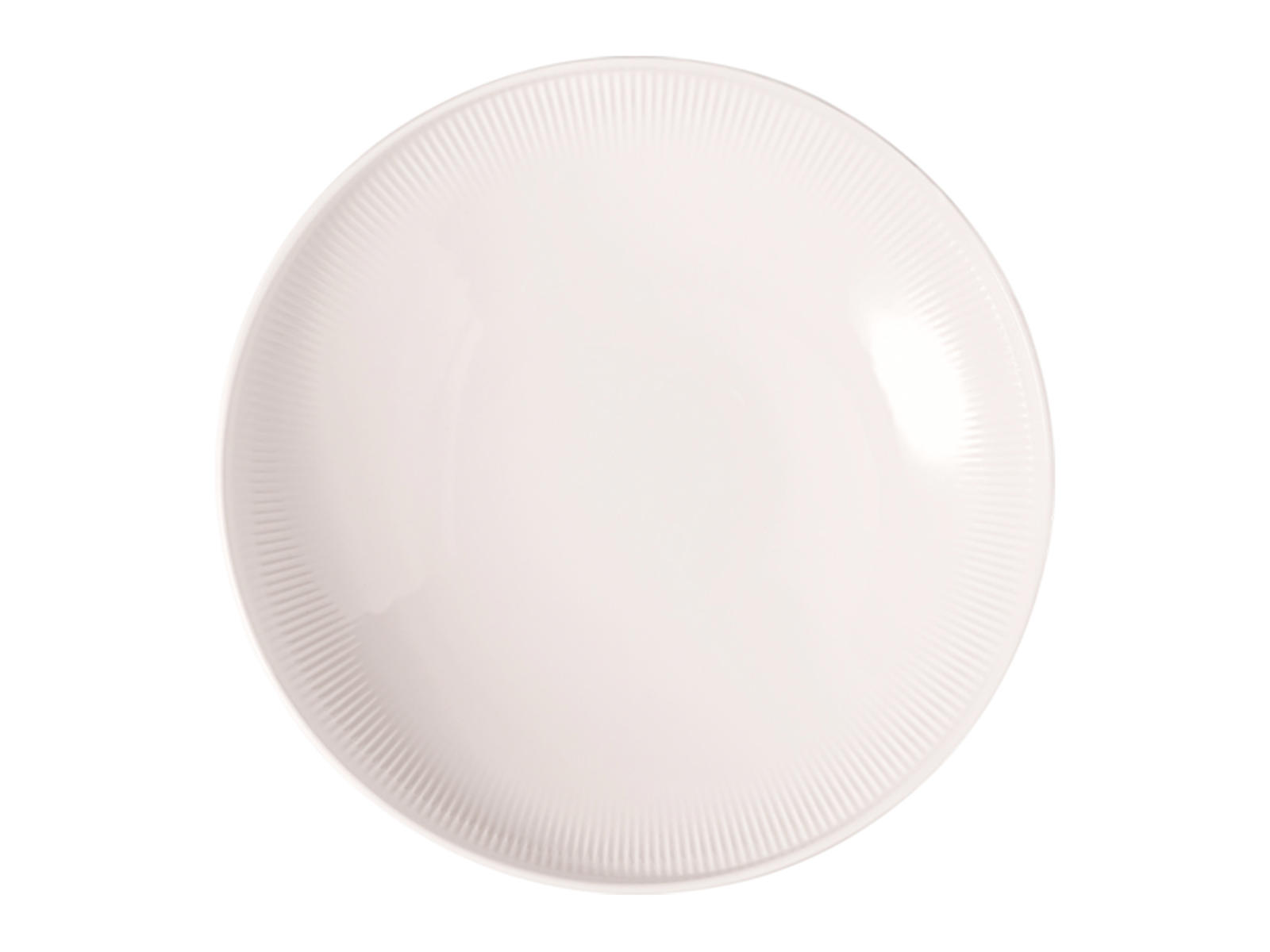 Med sin dybde på 750 ml giver tallerkenen god plads til både flydende og faste elementer i måltidet. Det subtile reliefmønster, inspireret af koncentriske solstråler, tilfører et diskret dekorativt element uden at stjæle opmærksomheden fra maden. Den forhøjede kant og moderne coupé-form kombinerer funktionalitet med et tidssvarende udtryk, der passer ind i både traditionelle og moderne bordopdækninger.