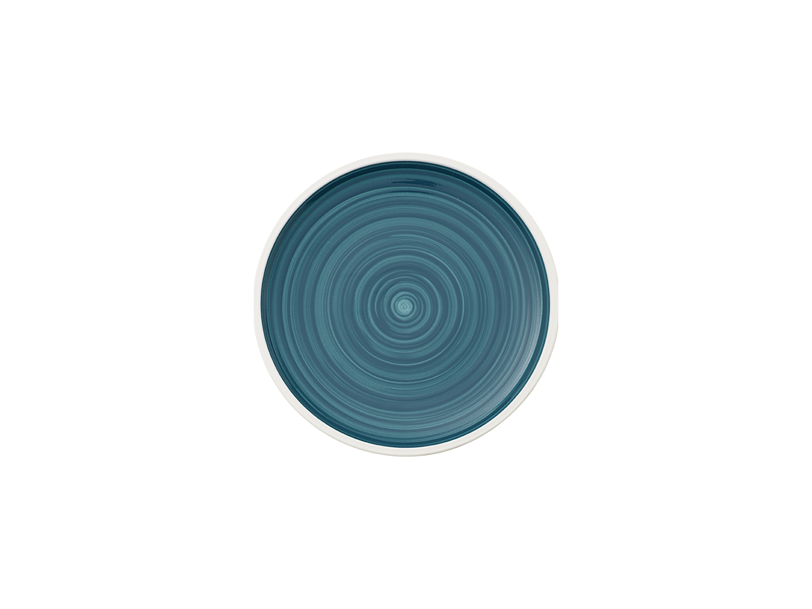 Denne flade tallerken fra Villeroy & Boch's Artesano Ocean kollektion fremviser en intens Pacific Green farve inspireret af havet. Hver tallerken har et unikt udtryk med strukturerede glaseringer og dekorative koncentriske cirkler, der giver et håndværksmæssigt præg.