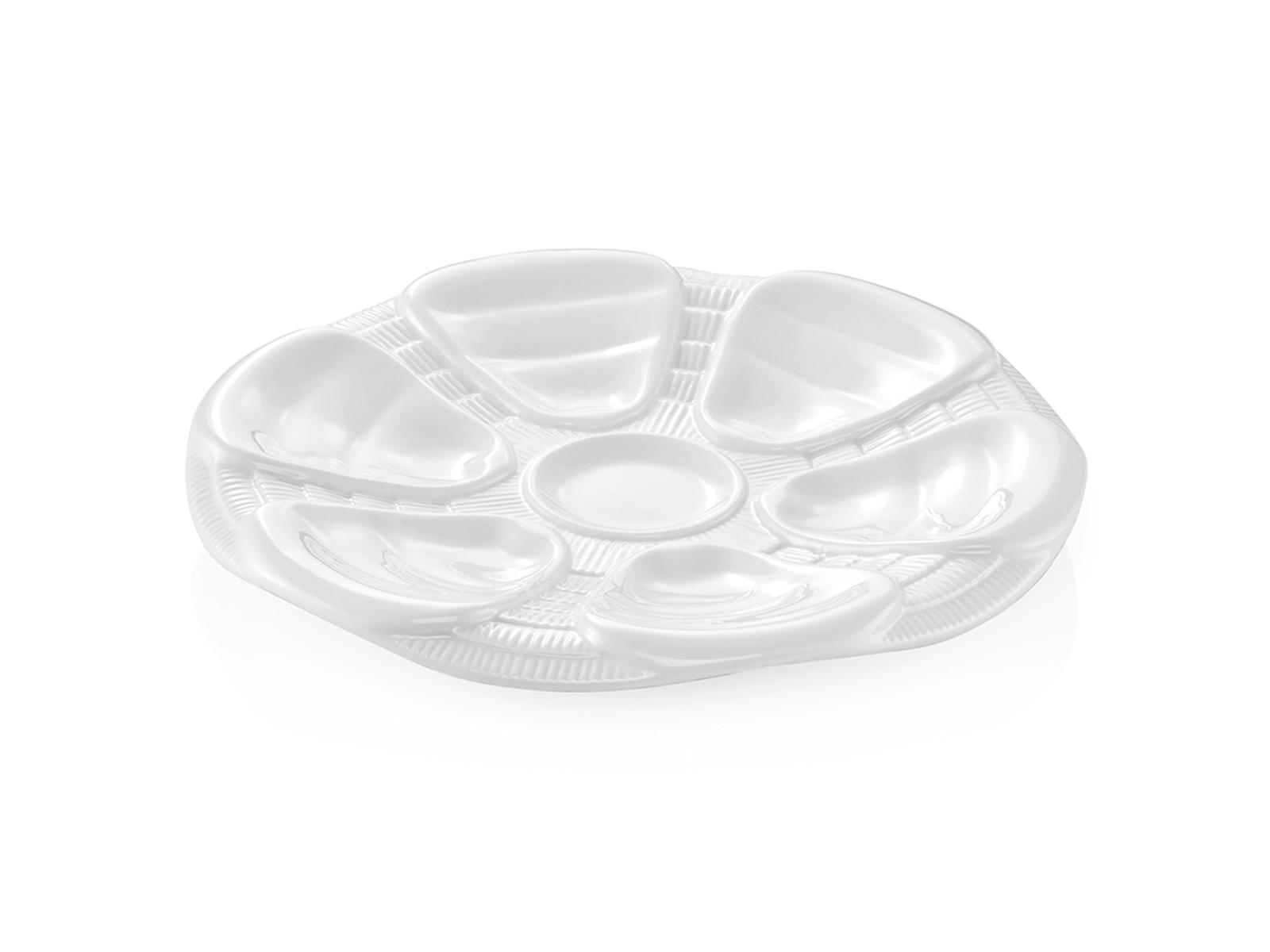 Østerstallerken med dedikerede fordybninger til 6 østers