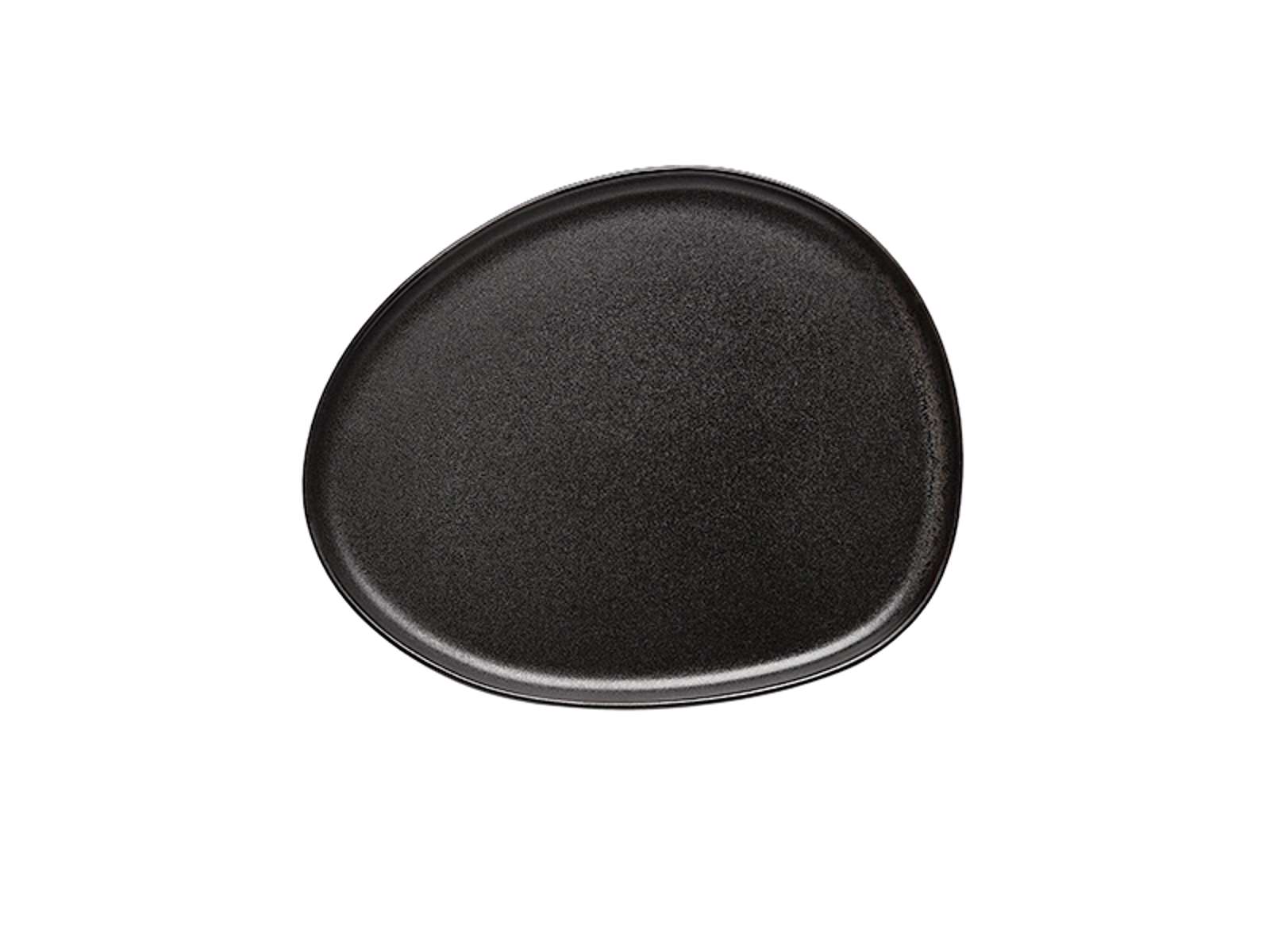 RAW Titanium Black tallerken i størrelsen 24x21 cm er fremstillet i kraftfuldt, dybt sort stentøj med en karakteristisk glasering. Hver tallerken er håndlavet og har en unik farvemætning og tekstur, hvilket giver hvert enkelt stykke et særpræget udseende. Den ridsefri finish sikrer, at tallerkenen bevarer sit smukke udtryk selv efter mange års brug.