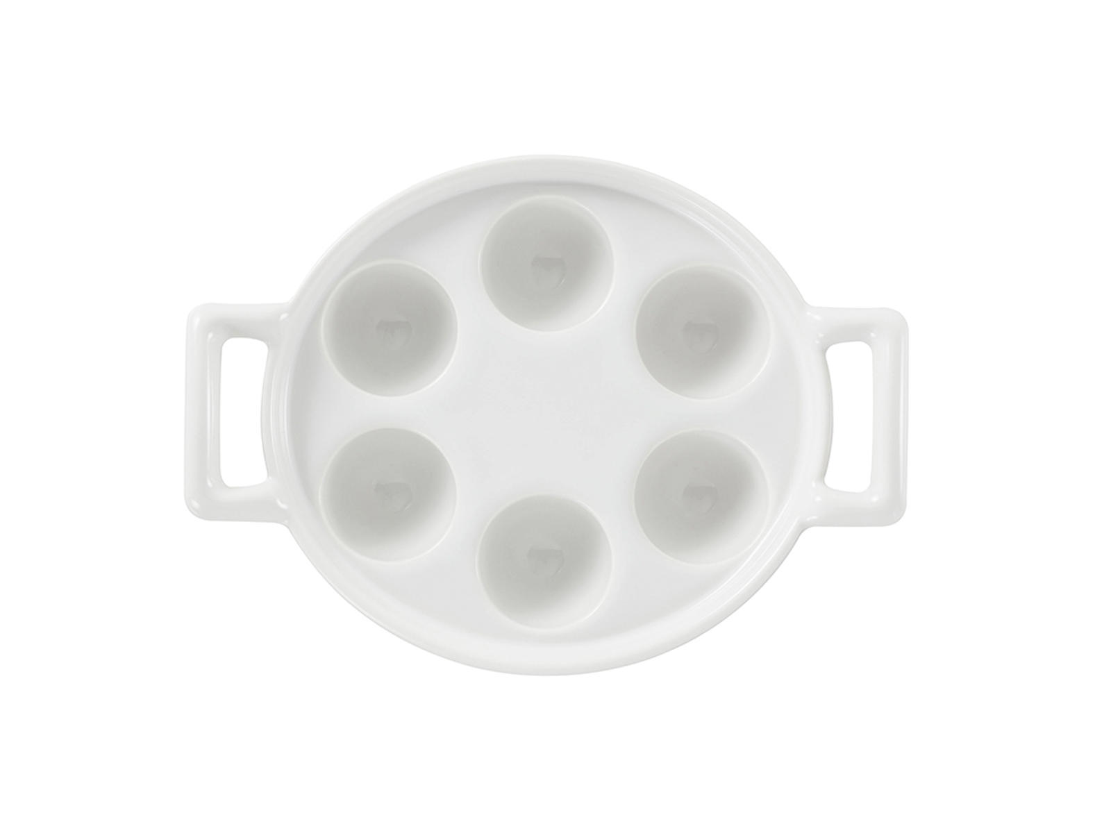 Belle Cuisine snegletallerken i hvidt porcelæn giver plads til 6 snegle og kombinerer funktionalitet med elegant design. Den solide porcelænskonstruktion sikrer holdbarhed og varmebestandighed, så du kan servere dine snegle direkte fra ovn til bord med stil.
