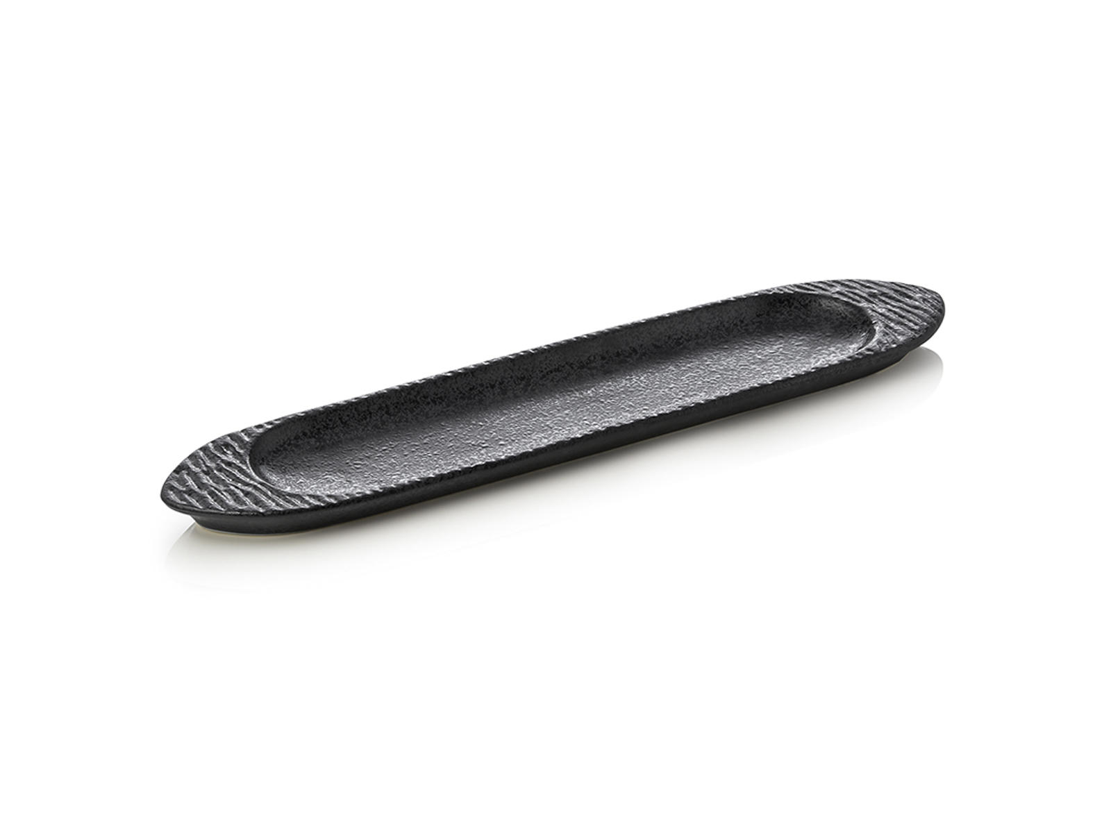 Maya-tallerkenen måler 45,5 cm i længden, 10 cm i bredden og har en højde på 2 cm. Den vejer 950 gram og er fremstillet i holdbart porcelæn med en elegant sort finish. Tallerkenen kan vaskes i opvaskemaskine, hvilket gør den særdeles velegnet til både hjemmebrug og professionelle køkkener.