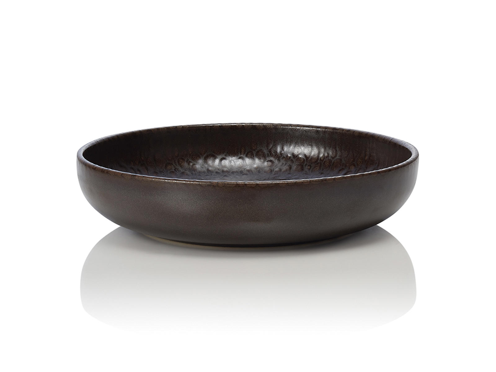 One Metallic Brown tallerkenen er fremstillet af kvalitetsstentøj, der er brændt ved 1.170°C. Den mørkebrune glasur har et metallisk spil, som giver en levende og varieret overflade. Små uregelmæssigheder i farve og tekstur gør hvert stykke unikt og tilfører en rå elegance med moderne kant. Den taktile, næsten vulkanske overflade skaber en særlig sanseoplevelse, når tallerkenen bruges. Vær opmærksom på, at ridser fra bestik kan forekomme ved almindelig brug.