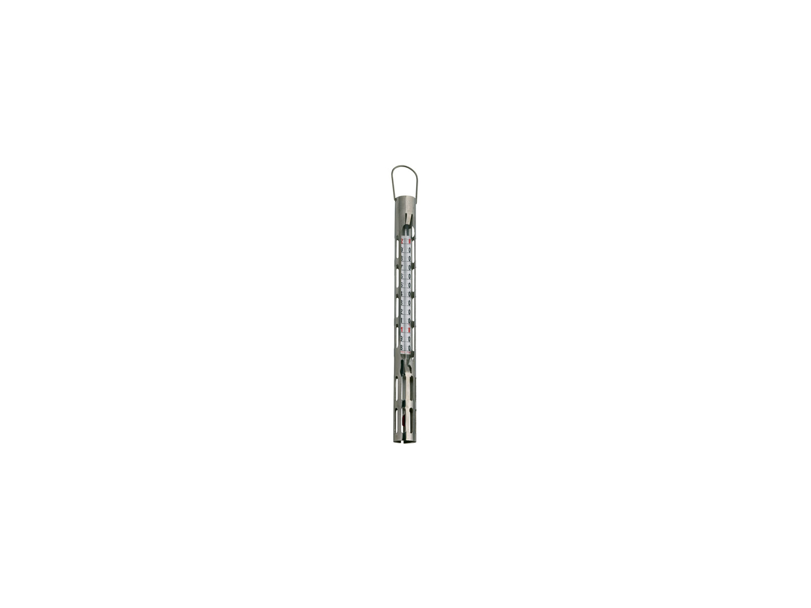 Termometerets letlæselige skala gør det nemt at aflæse temperaturen præcist under madlavningen. Den røde væske i glaskroppen giver tydelig kontrast mod skalaen, hvilket sikrer korrekte aflæsninger selv i travle køkkenmiljøer. Det rustfrie stålhylster beskytter termometeret mod stød, slag og andre påvirkninger, der kan forekomme i et aktivt køkken. Med en længde på 300 mm kan termometeret nemt nå ind til kernen af forskellige retter og madvarer.