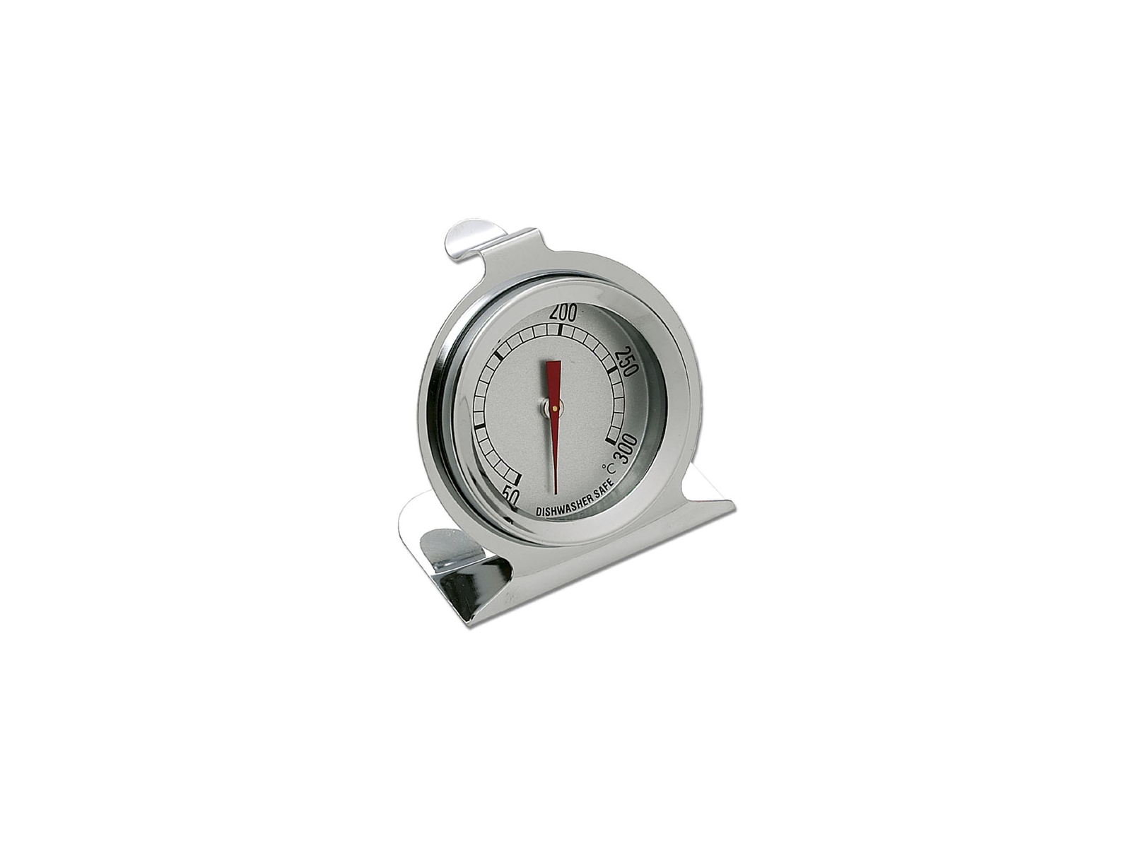 Termometeret er fremstillet i holdbart rustfrit stål, der sikrer lang levetid selv ved daglig brug. Det måler 163 mm i længden og vejer kun 70 gram, hvilket gør det let at placere i ovnen. Temperaturområdet på 50-300°C giver fleksibilitet til forskellige madlavningsteknikker, og den tydelige skala gør det nemt at aflæse den præcise temperatur.